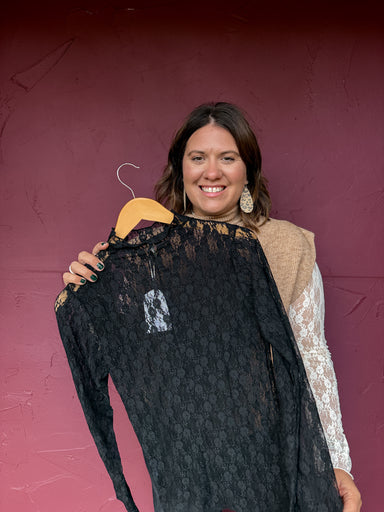 This sheer lace layering top brings a feminine-meets-modern vibe that’s perfect under graphic tees, blazers, or cozy knits. With a fitted silhouett...