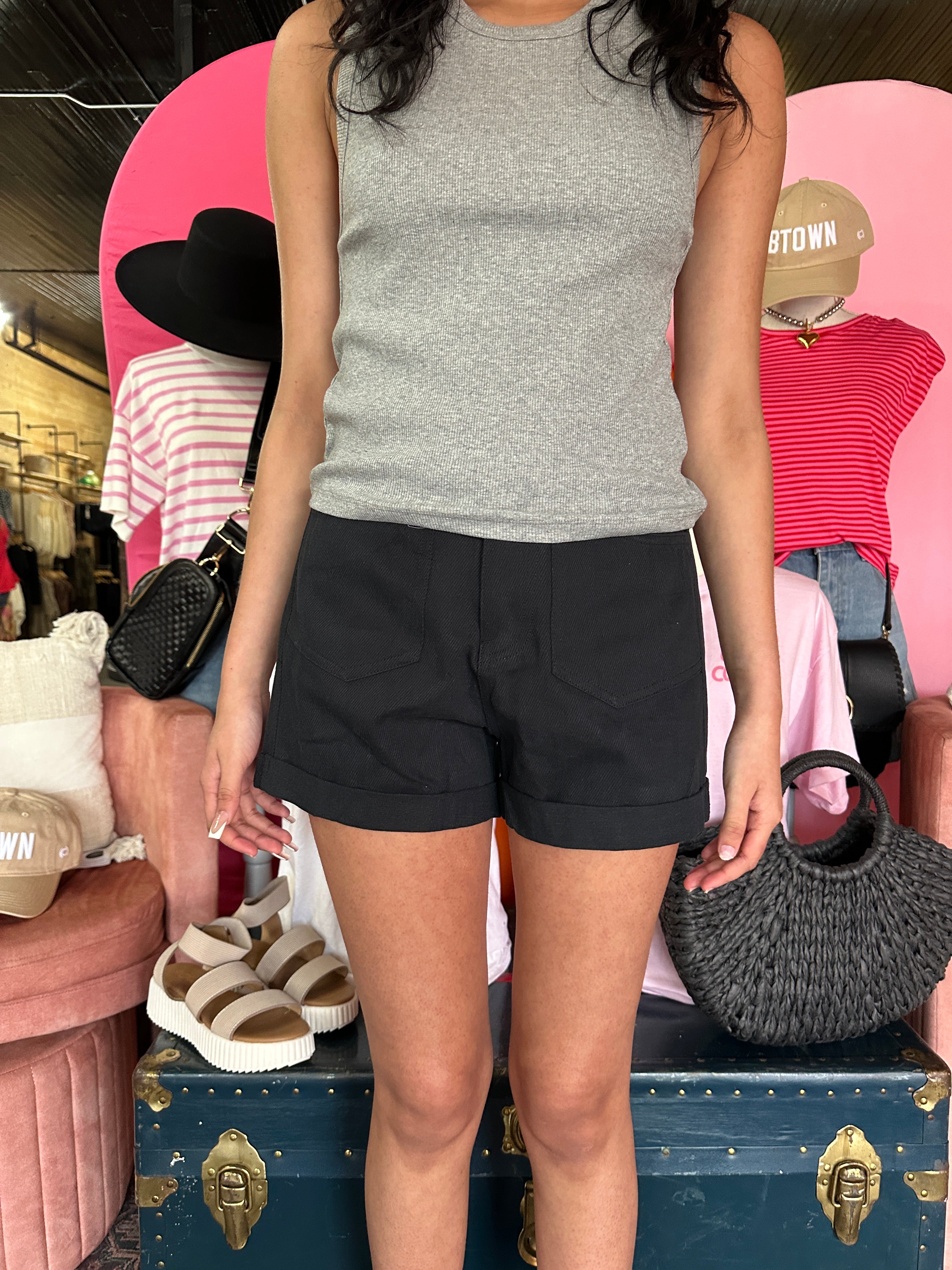 Our High Rise Black Denim Shorts are your summer uniform—no notes. They hit right at the natural waist (read: no muffin top, just ✨mom bod magic✨), with a flattering fit that hugs in all the right places and leaves room where it matters.