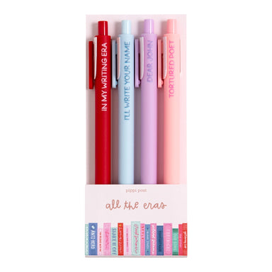 Writing is Magic Set Features: 4 click-style gel ink pens Ink colors: Light Blue, Lilac, Rust, Navy Size: Package - 6”×2.25×0.4” Design: Writing is...