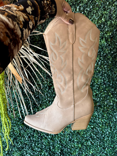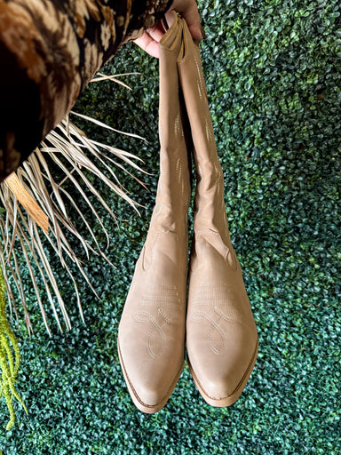 Classic cowboy style, reimagined for everyday wear. These tall Western boots feature intricate stitched detailing, a pointed toe, and a sturdy bloc...