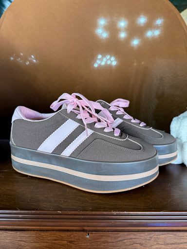 A retro-inspired platform sneaker with a modern edge. Featuring a rich mocha brown base paired with soft blush accents, this sneaker brings comfort...