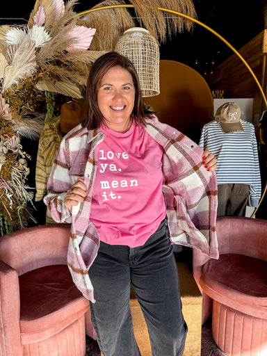 This is the tee you throw on when you genuinely love them… even if you’re mildly annoyed while doing it. The Love Ya. Mean It. Graphic Tee delivers...