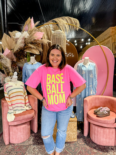 Loud, proud, and easy to spot in the stands. Because if you’re showing up, you might as well look good doing it. Women’s baseball mom graphic tee d...