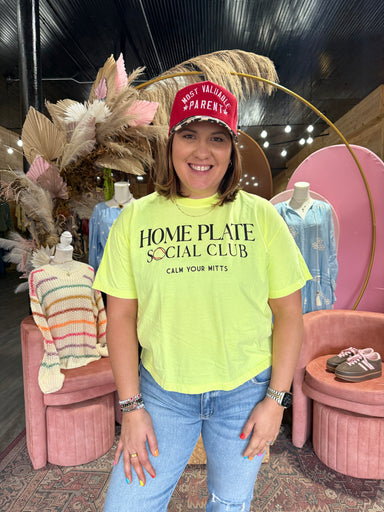Sporty with personality. And yes, we’re absolutely wearing this all season. Women’s graphic tee featuring “Home Plate Social Club” with a playful b...