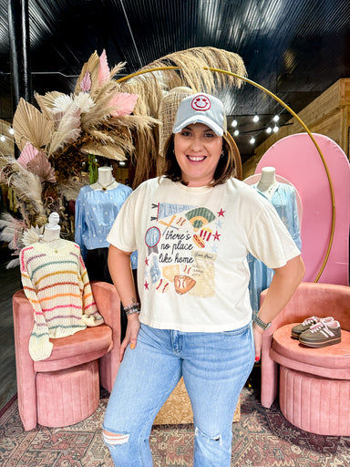 There’s no place like home. Especially at the ball field. A little vintage, a little sporty, and a whole lot of fun. Women’s baseball graphic crop ...