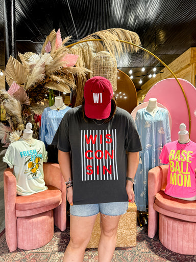 Minimal but makes a statement. A local tee that actually feels cool. Women’s Wisconsin graphic tee featuring a modern vertical stripe design with b...
