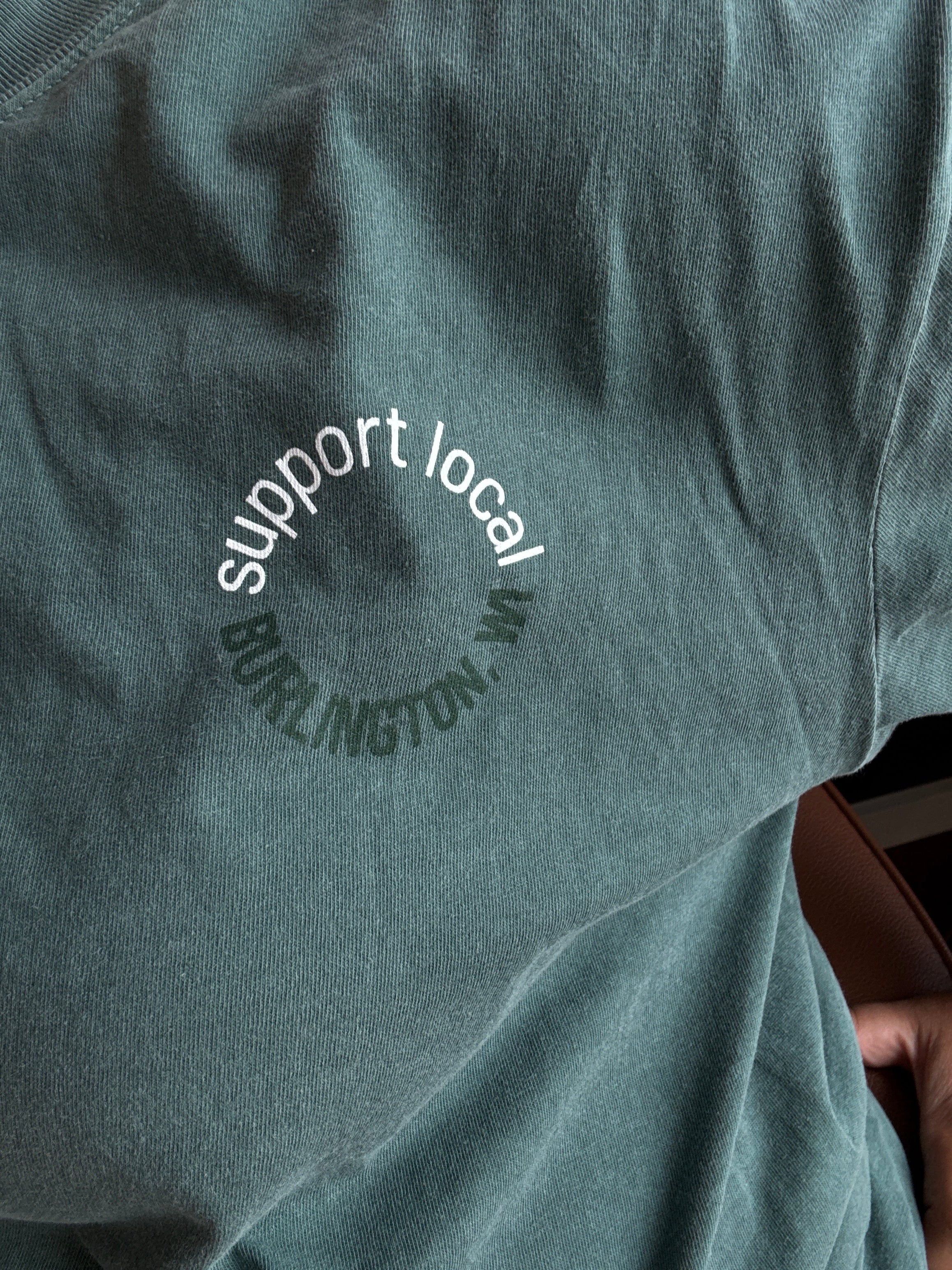 Celebrate your roots and rep your city with the Support Local map tee. On the front, a clean circle graphic reminds everyone of your Burlington pride. On the back, the full city map takes center stage—an artistic nod to the streets, lakes, and spots that make our town home. Printed on a comfort-washed tee, it’s soft, durable, and ready for everything from Saturday market strolls to bonfires by the lake.