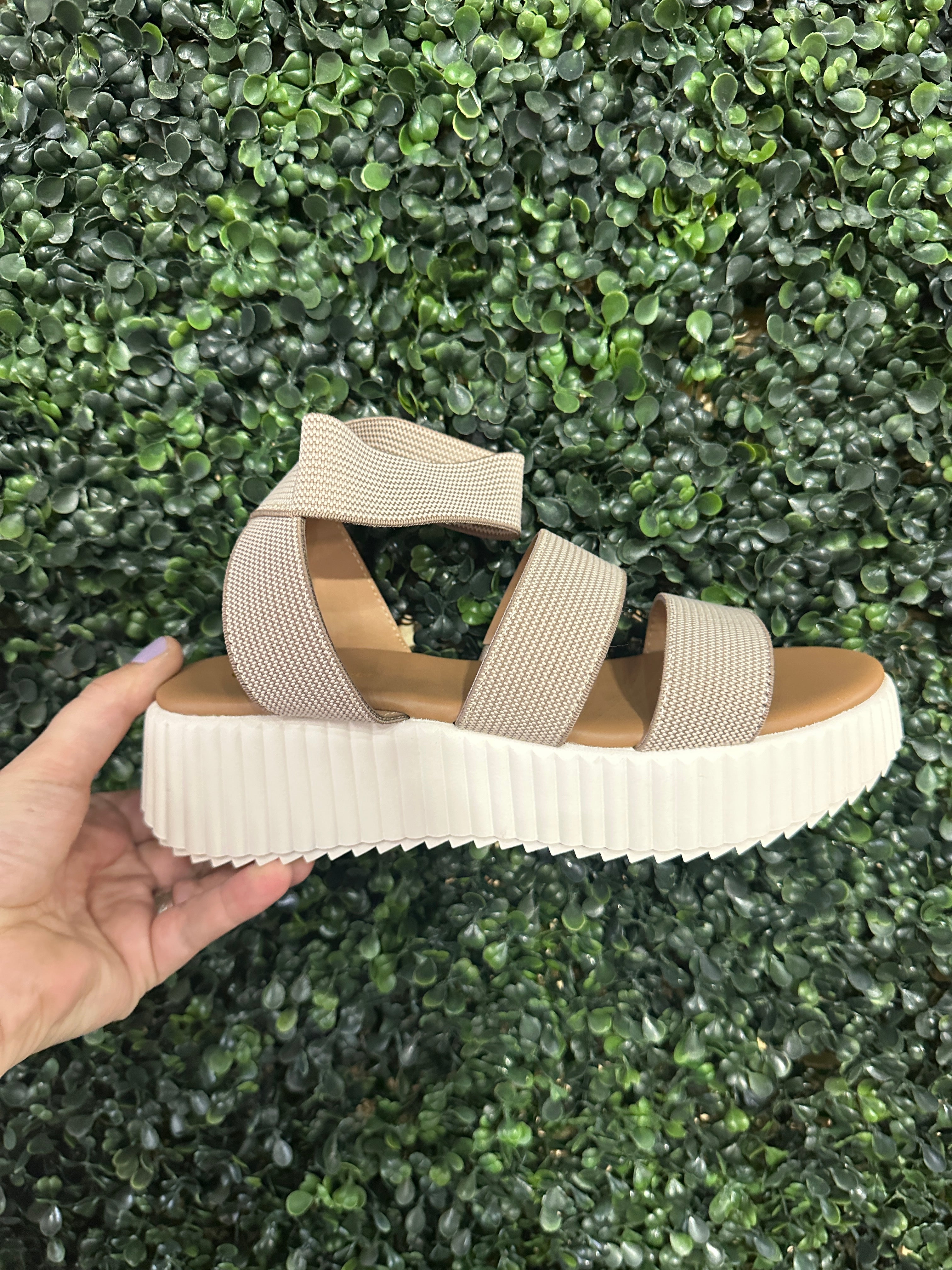 Elevate your style with our Vista Flatform Sandals! These strappy sandals feature a woven platform and open toe for a unique touch. With mid flatform bottoms and sawtooth outsoles, you'll experience both height and comfort. Slip them on effortlessly with elastic strapping. Upgrade your shoe game now!